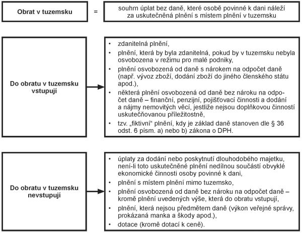 Do obratu v tuzemsku se naopak nezahrnou poskytnuté služby s místem plnění mimo tuzemsko. Jedná se o stavební práce na nemovitých věcech na Slovensku, kde místem plnění u těchto služeb je místo, kde se dané nemovité věci nacházejí. Do obratu v tuzemsku se nezahrnou ani zálohy na plnění, která se uskuteční až v následujících obdobích, a ani platby za plnění, která nastala dříve. Rovněž jednorázový úrok z půjčky, vzhledem k tomu, že se jedná o doplňkovou činnost uskutečněnou příležitostně, do obratu v tuzemsku nevstoupí. Do obratu v tuzemsku se nezahrne ani přijatá dotace na nákup investičního majetku.