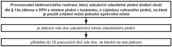 Osoba (neplátce – tuzemský či netuzemský) provozující webové stránky – e-shop na svých stránkách nabízí zboží různých prodejců ze třetích zemí. Provozovatel elektronického rozhraní (osoba provozující e-shop) v některých případech přebírá povinnost odvést daň za skutečné prodejce zboží. Např. pokud je prodáno zboží zahraničního prodejce (jde o zboží nacházející se na území EU) přes e-shop provozovatele elektronického rozhraní do tuzemska soukromé osobě, má provozovatel elektronického rozhraní v tuzemsku povinnost odvést DPH. Pokud daň neodvede přes tzv. One Stop Shop (zvláštní režim jednoho správního místa), zaregistruje se v tuzemsku a odvede daň.