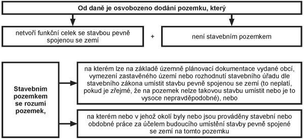 Pokud je dodáván stavební pozemek, nelze uplatnit osvobození dle § 62 odst. 1 ZDPH, podle kterého je plněním osvobozeným od daně dodání zboží použitého plátcem výlučně k uskutečnění plnění osvobozených od daně bez nároku na odpočet daně. Pokud tedy např. plátce koupí pozemek, který bude následně pronajímat jako plnění osvobozené, následně tento pozemek prodá, a pozemek bude z pohledu zákona o DPH stavebním pozemkem, půjde o zdanitelné plnění.