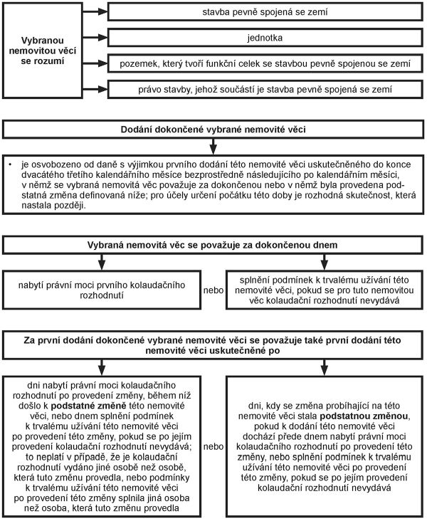Podstatnou změnou se rozumí změna dokončené vybrané nemovité věci, jejímž cílem je změna jejího využití nebo podmínek jejího obývání, pokud skutečné náklady vynaložené na tuto změnu bez daně osobou, která uskutečňuje bezprostředně následující dodání této nemovité věci, přesáhnou 30 % základu daně při tomto bezprostředně následujícím dodání.