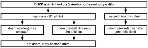 Plátce provádí stavební práce, rekonstrukci bytového domu. Se zákazníkem uzavřel smlouvu o dílo, přičemž si ve smlouvě ujednali data uskutečnění dílčích plnění – 10. 10. výměna oken, 10. 11. zateplení budovy, 10. 12. zhotovení omítky.