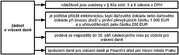 Nárok na vrácení daně se uplatní podáním žádosti, místně příslušným správcem daně je Finanční úřad pro hlavní město Prahu.